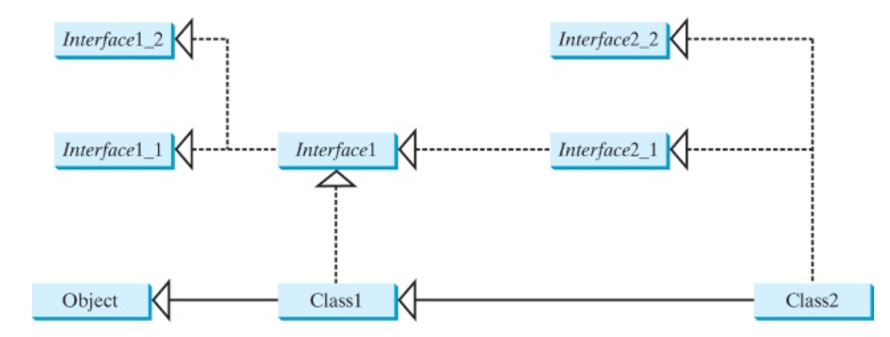 『在多个方面 in many ways』,一个接口类似抽象类,但是 意图intent 是去规定多个相关或不相关类的共同行为。例如,使用多个接口,去规定对象是否可以comparable 比较 、 可食用的 edible [ˈedəbl] 、 cloneable 复制 。